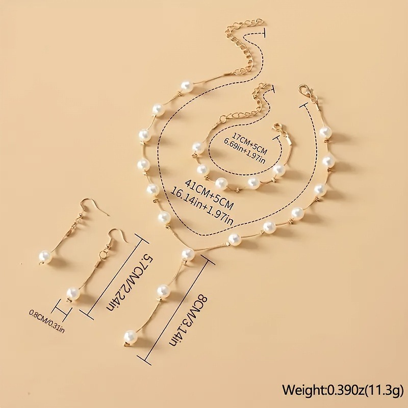 自营4pcs/set Imitation Pearl Earrings Bracelet Necklace Jewelry Set - Wedding Party Vacation Accessories, Mother'S Day, Valentine'S Day, Wedding Anniversary, Birthday Gift, Halloween, Christmas Gift4 件套仿珍珠耳环、手镯、项链首饰套装,婚礼、派对、度假配饰,母亲节、情人节、结婚纪念日、生日礼物,万圣节、圣诞节礼物