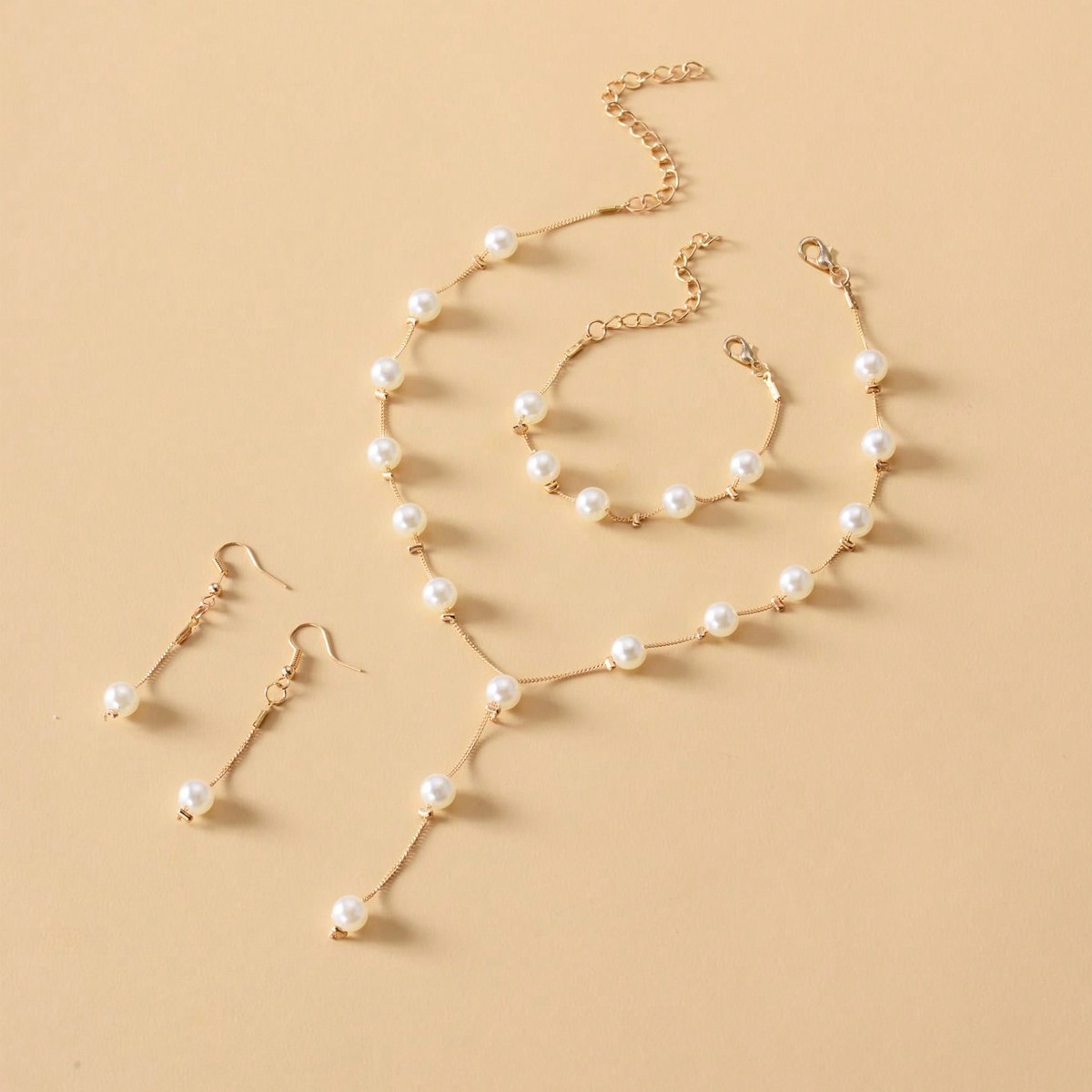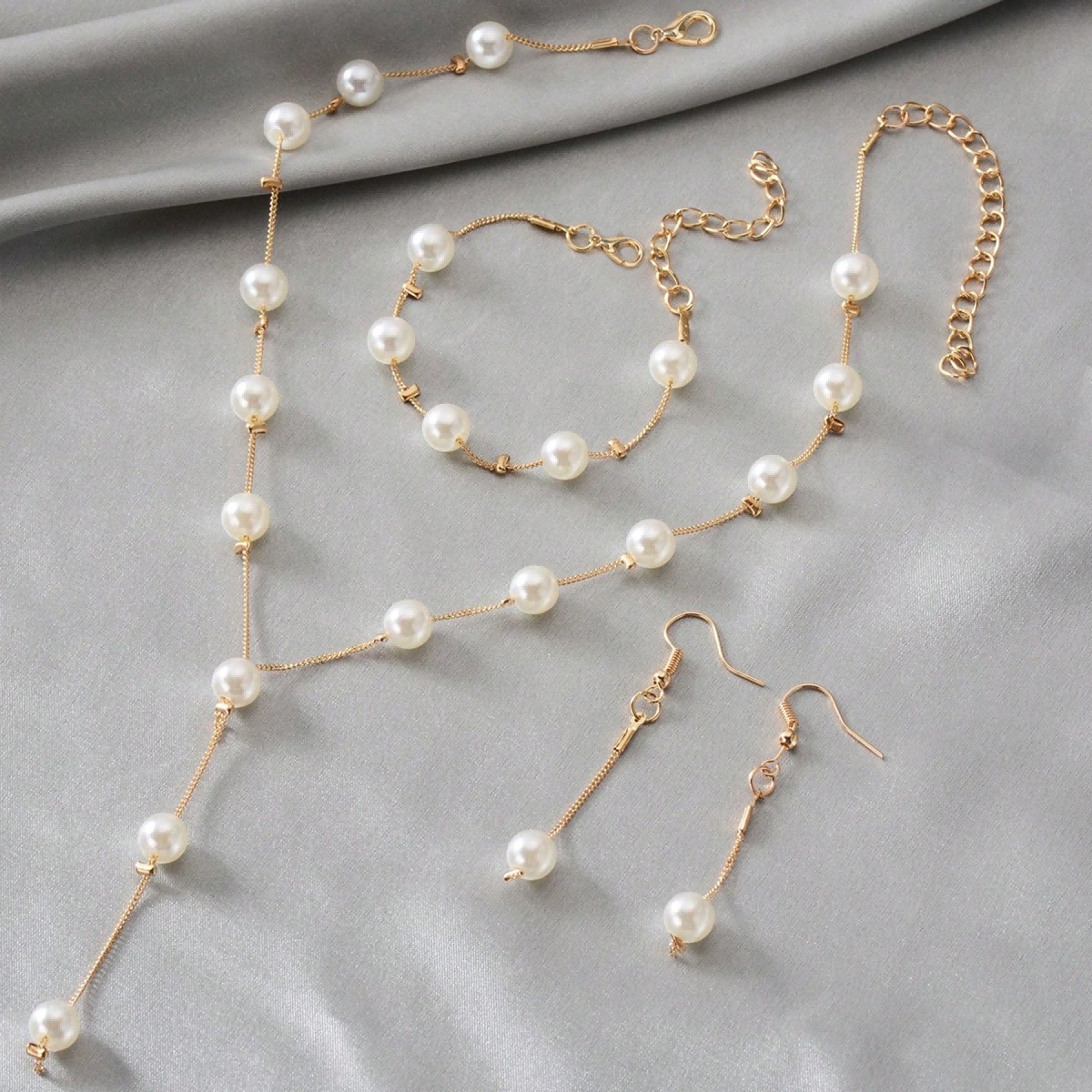 首页> 全部类目> 项链> 4pcs/set Imitation Pearl Earrings Bracelet Necklace Jewelry Set - Wedding Party Vacation Accessories, Mother'S Day, Valentine'S Day, Wedding Anniversary, Birthday Gift, Halloween, Christmas Gift