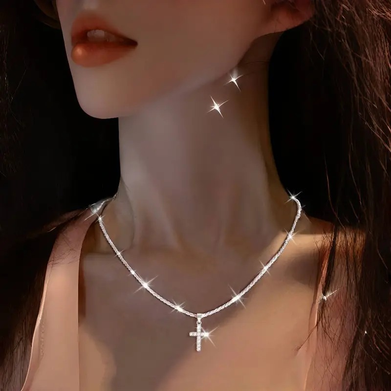 自营Cross necklace, classic retro design, outlined with simple lines, profound in meaning, exquisite and versatile, suitable for daily wear or as a gift.十字项链,经典复古设计,简约线条勾勒,寓意深远,精致百搭,日常佩戴或送礼皆宜。