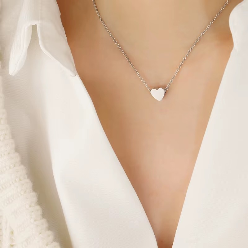 首页> 全部类目> 项链> Heart pendant necklace, with a lustrous finish outlining a romantic silhouette, paired with a delicate chain for a dainty drop. Its simple design holds tenderness, enhancing elegance for daily wear.