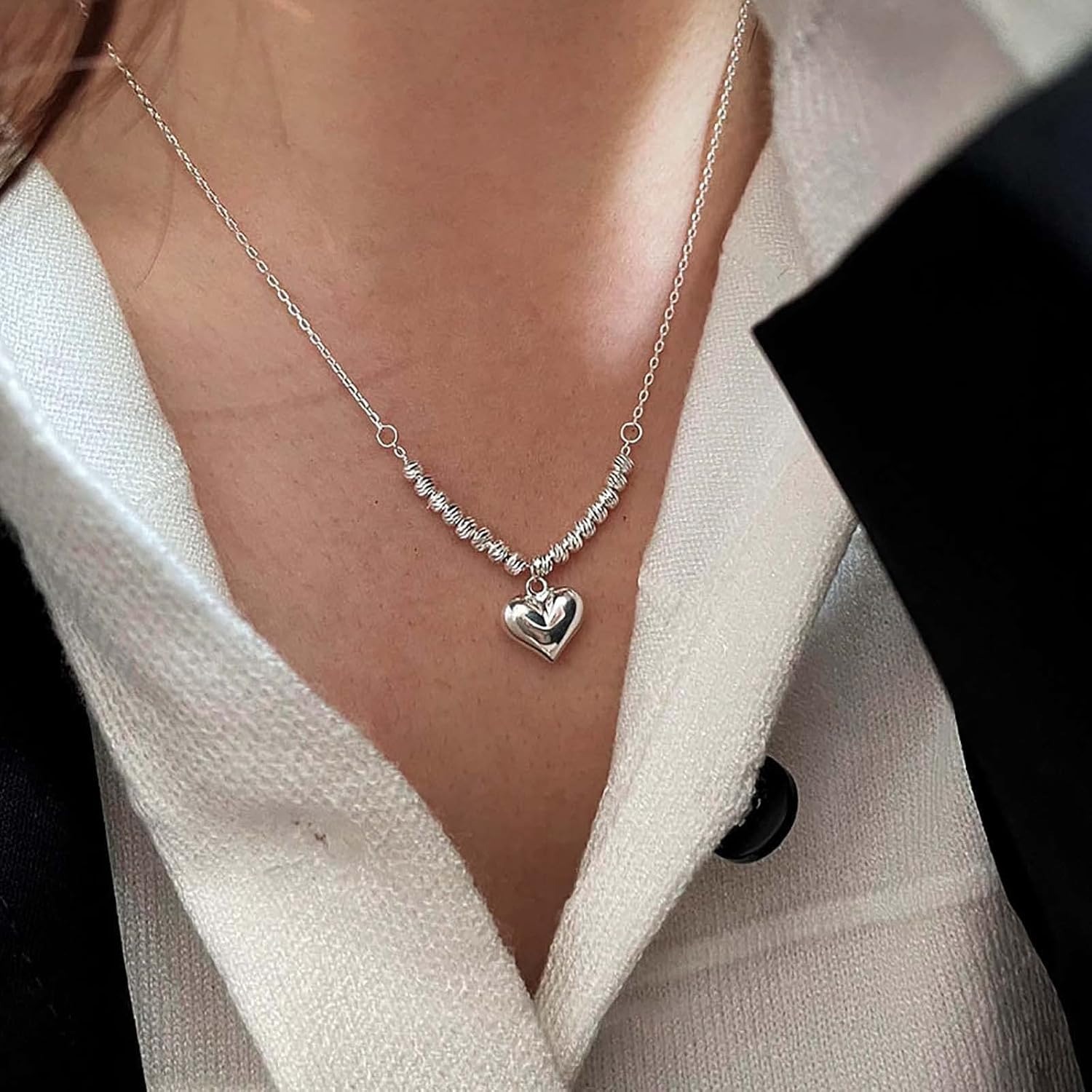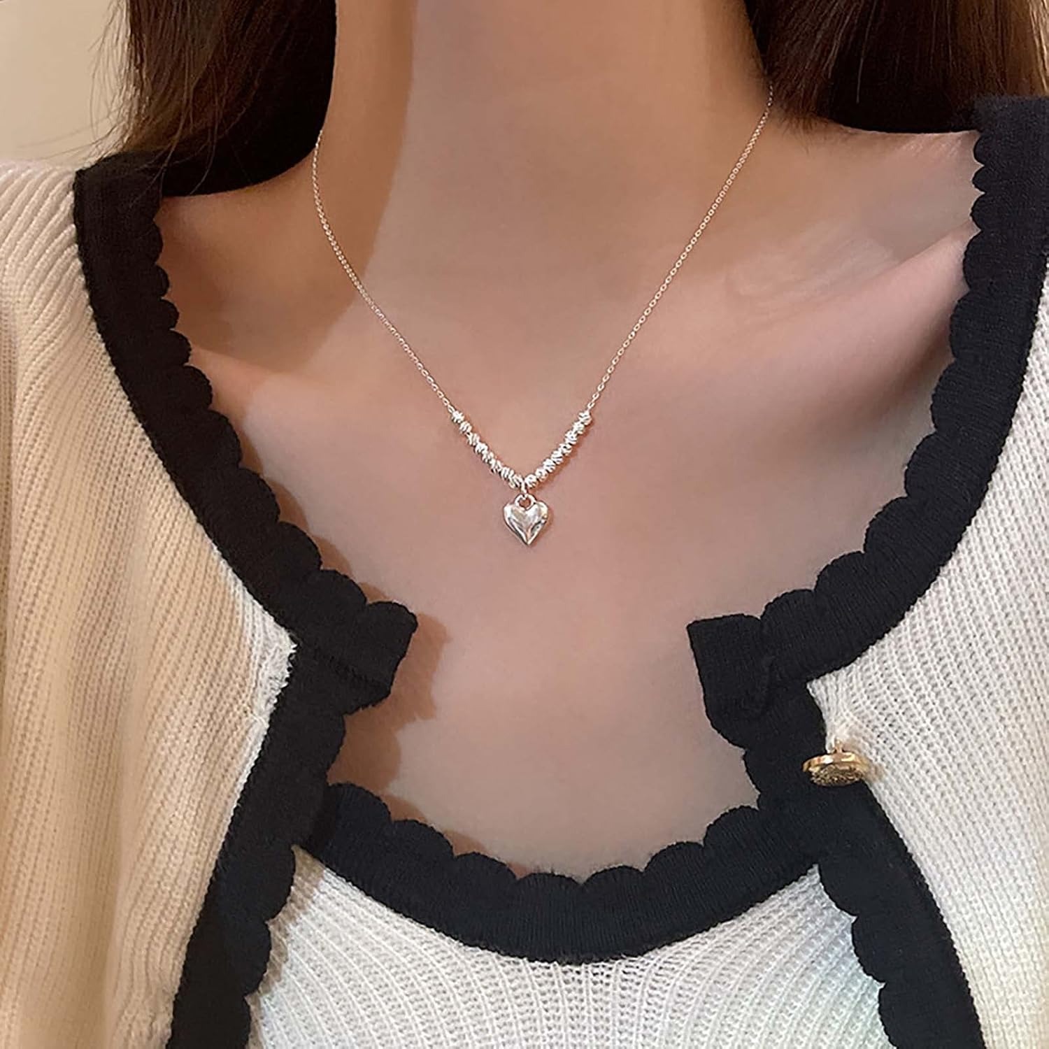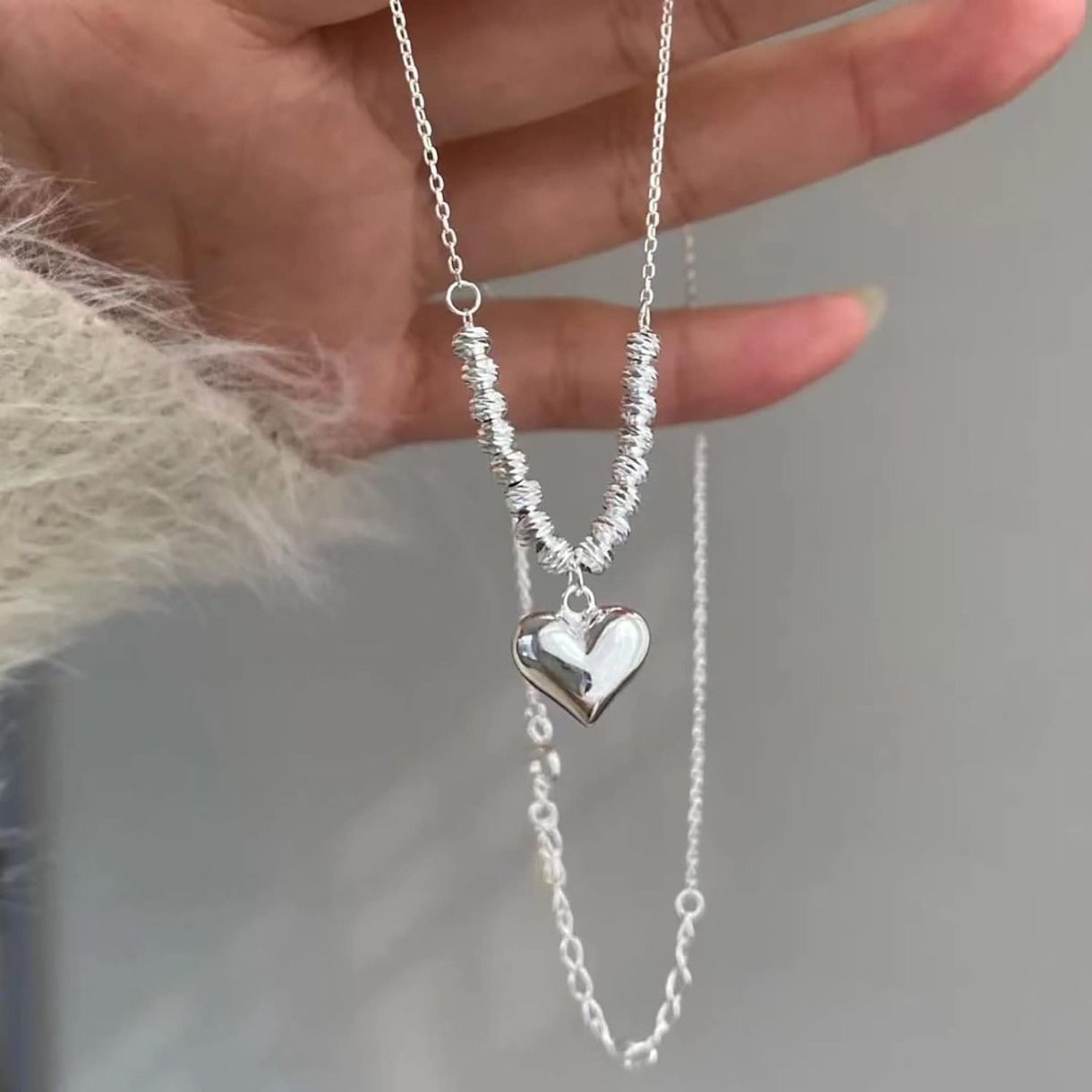 自营Heart Pendant Necklace - Plump Heart Shape for Gentle Healing, Dainty Chain for Elegance, Romantic for Daily Wear爱心吊坠项链,饱满心形温柔治愈,细链搭配显精致,日常佩戴传递浪漫感。