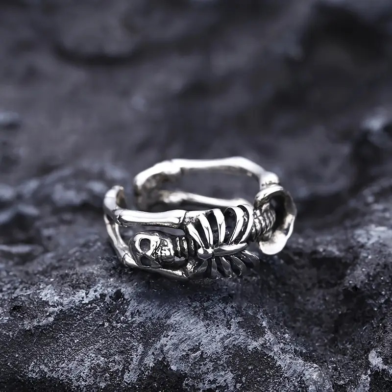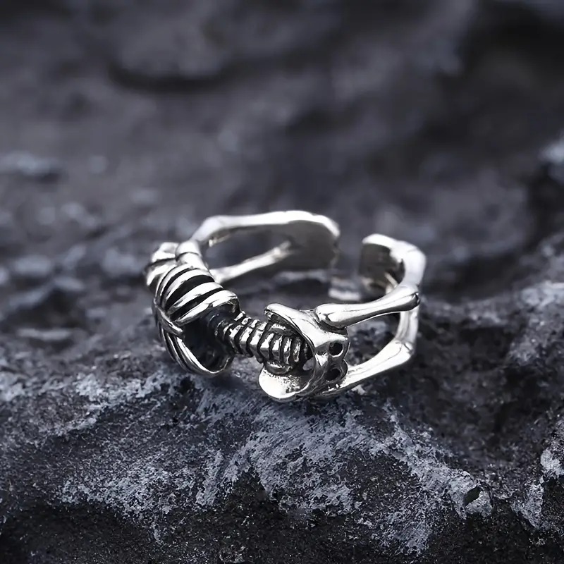 自营Vintage Skull Ring - Exquisite Patterns with Detailing, Heavy Metallic Texture, Showing a Cool and Bold Attitude When Worn复古骷髅戒指,纹路精致还原细节,金属质感厚重,佩戴凸显酷飒态度。