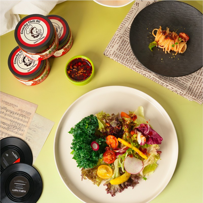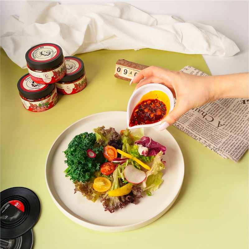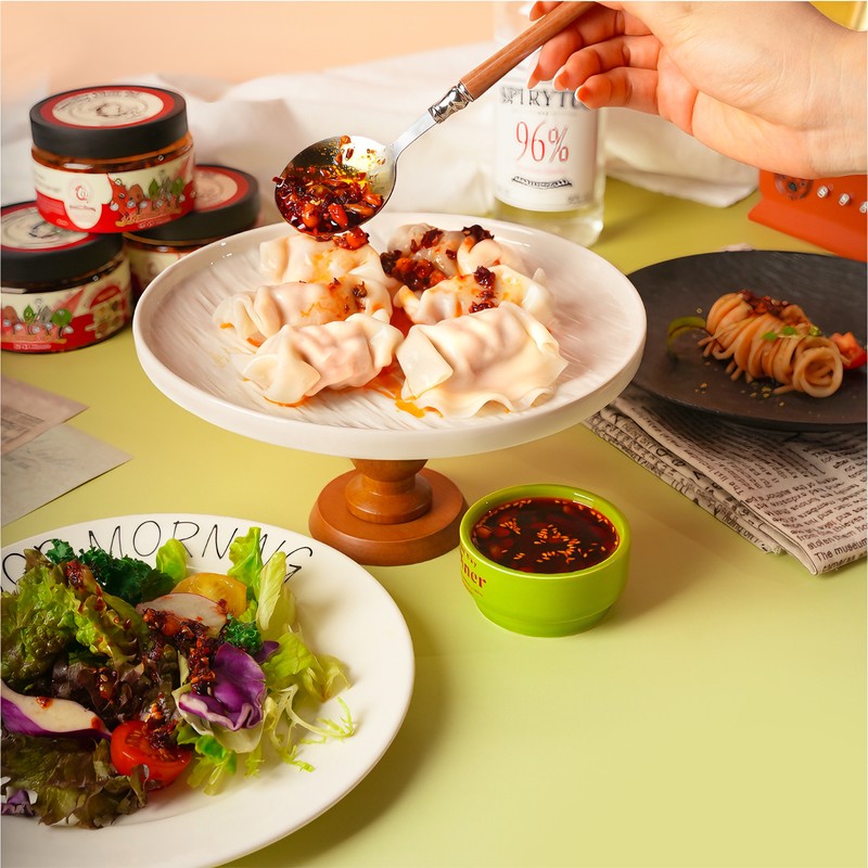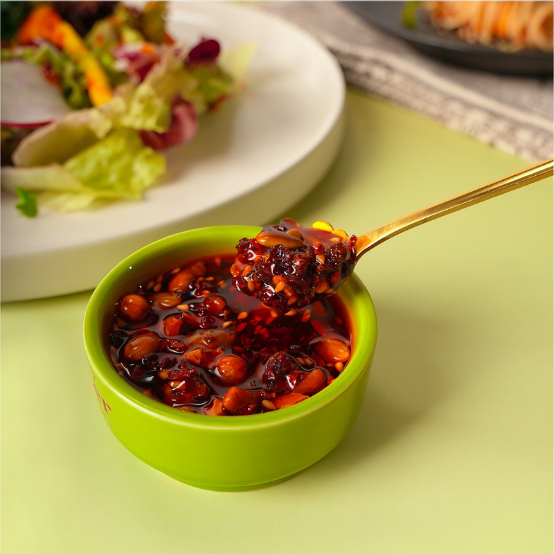 自营Crispy Chili Oil - Sichuan-Style Spicy Chili Sauce with Roasted Sesame | 170g/Jar. Allergens: Contains tree nuts (walnuts),sesame.May contain traces of other nuts.脆辣椒油,成分:植物油、辣椒芝麻、豌豆、南瓜籽、葵花籽、核桃仁四川花椒、芝糖、麻油、盐、香料