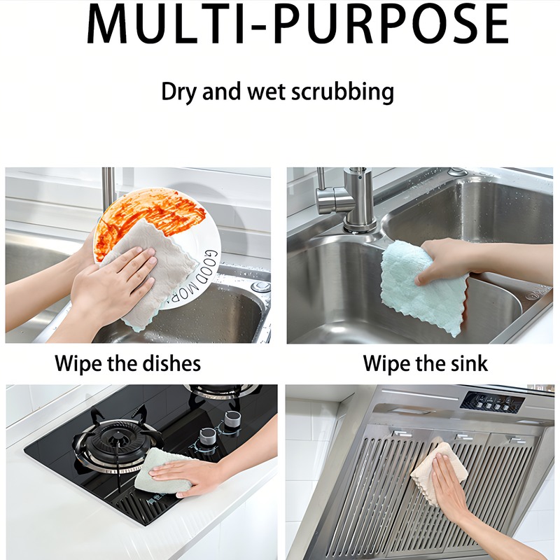 工厂有货10-Pack Dual-Sided Cleaning Cloths - Super Absorbent & Lint-Free for Tough Stains (Kitchen, Car, Glass) - Reusable & Machine Washable10 条装双面抹布,多功能清洁,顽固污渍一键清除!