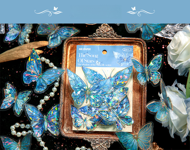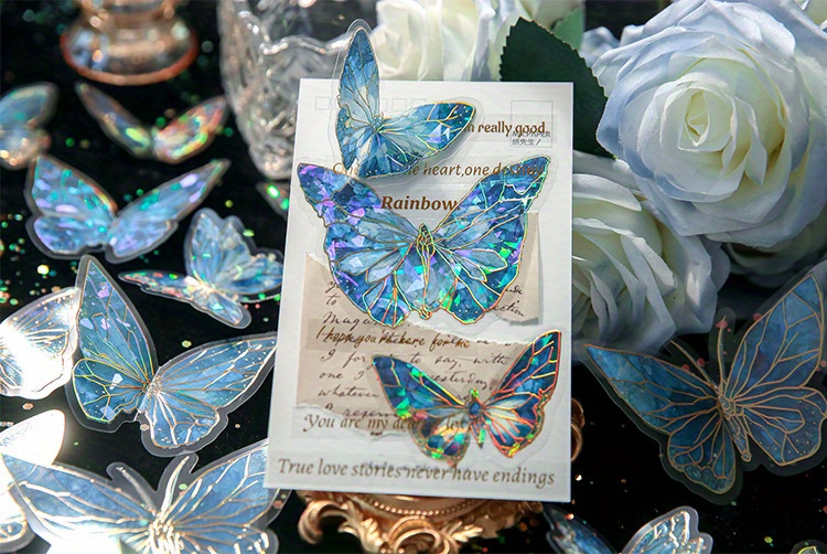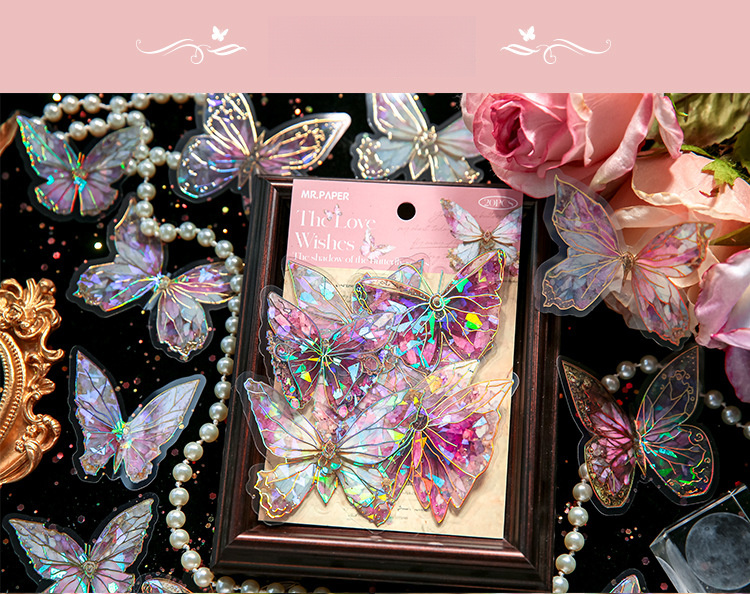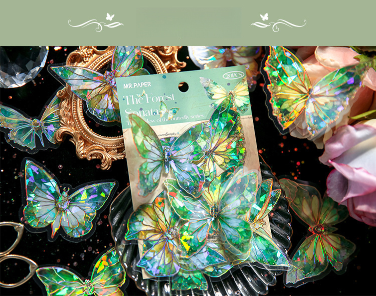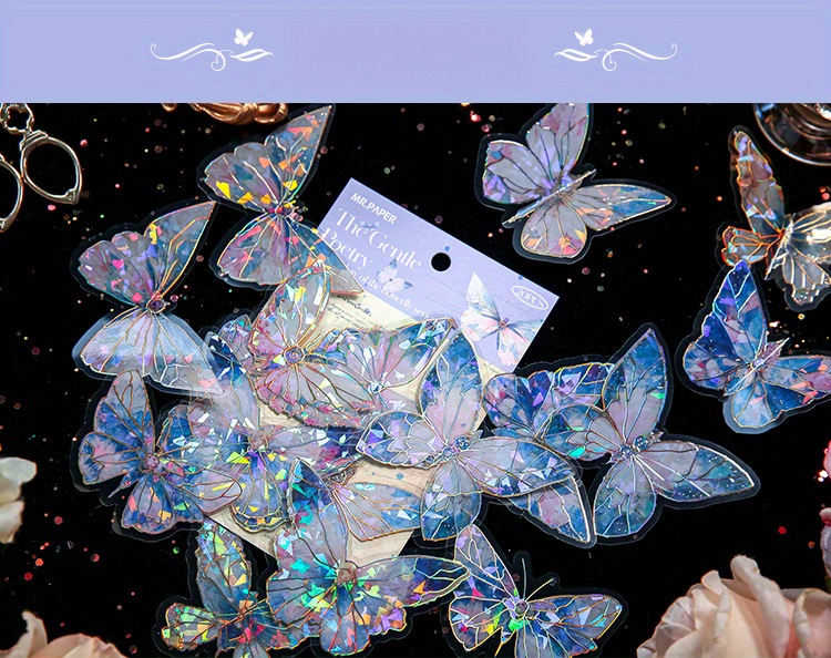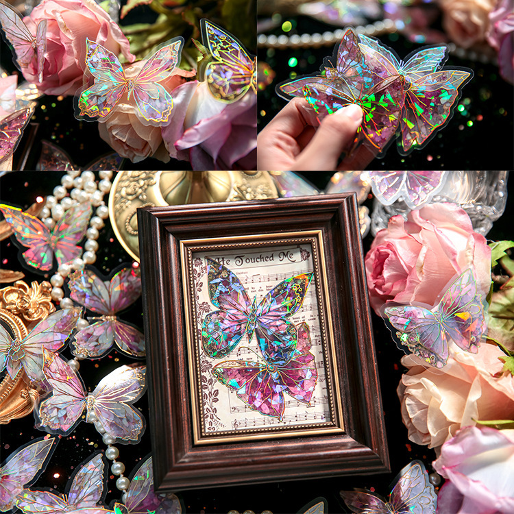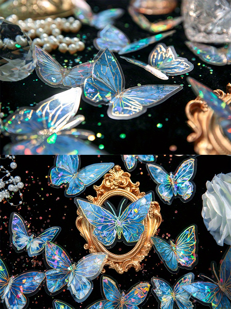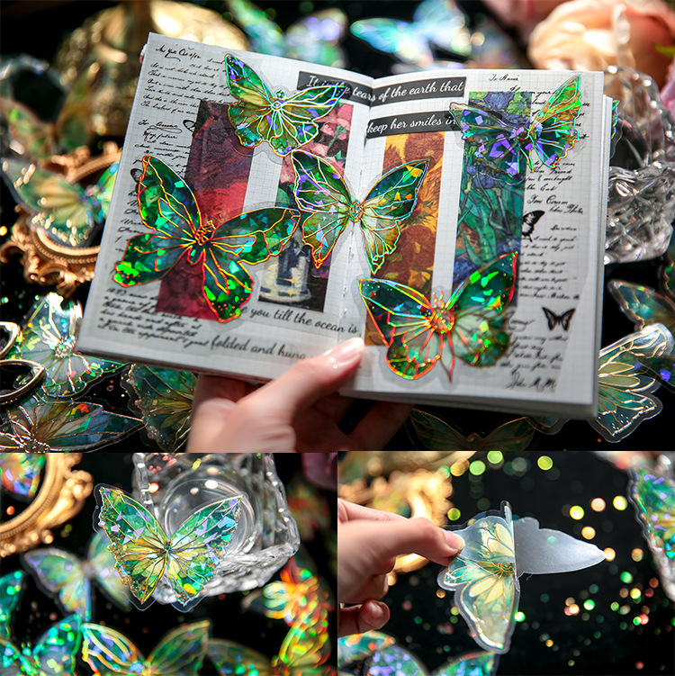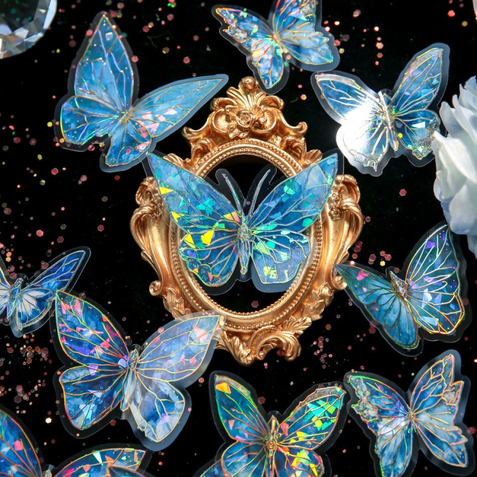 首页> 爆款预售> 装饰贴纸> 80 butterfly sticker packs, dreamy hot stamped butterfly card theme, stunning retro style, PVC material, DIY journal decoration material sticker pack
