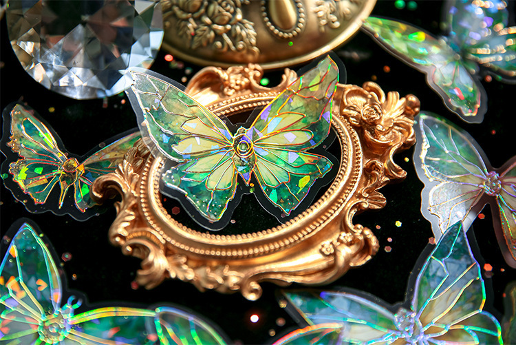 工厂有货80 butterfly sticker packs, dreamy hot stamped butterfly card theme, stunning retro style, PVC material, DIY journal decoration material sticker pack80张蝴蝶贴纸包 梦幻烫金蝴蝶咕卡主题 华丽复古风 PVC材质 DIY手账装饰素材贴纸包,梦幻烫金 蝴蝶咕卡贴纸