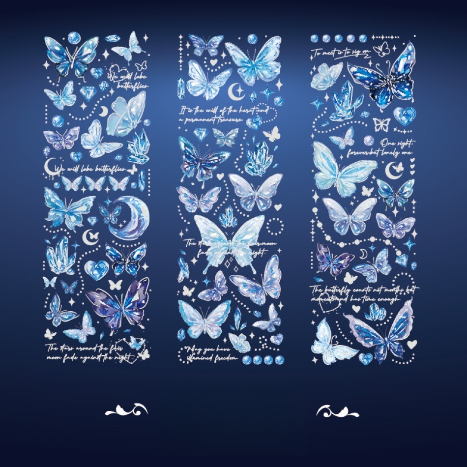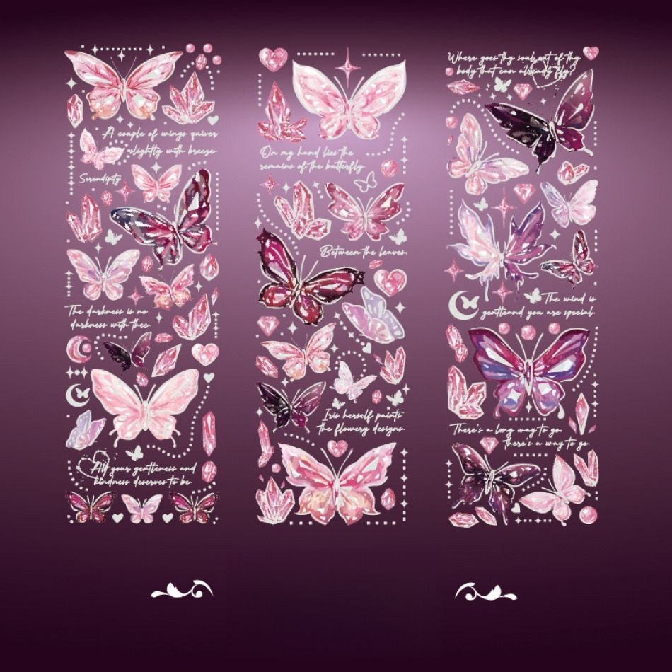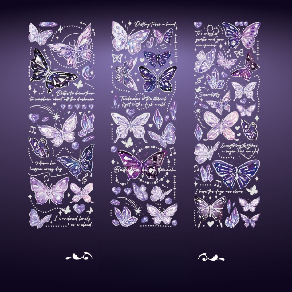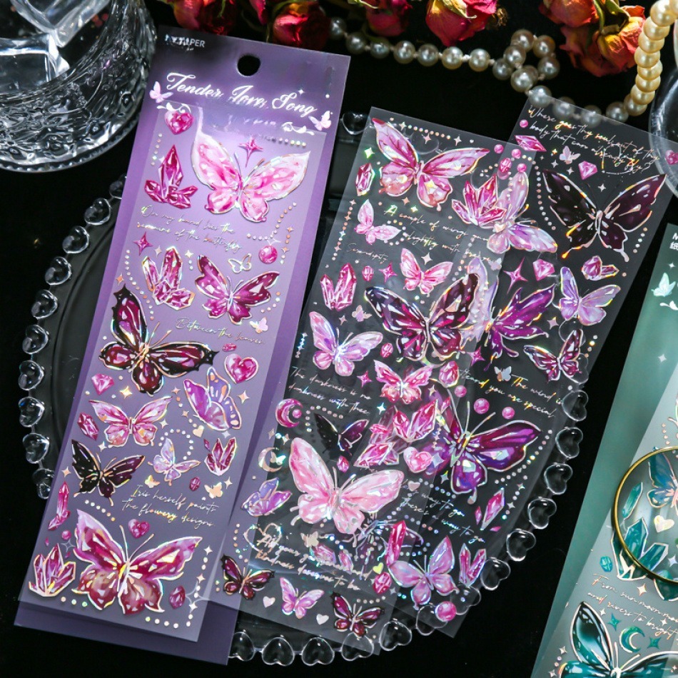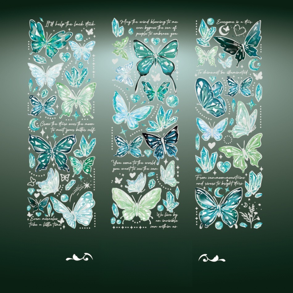 首页> 爆款预售> 装饰贴纸> 12 pieces of hot stamping embossed stickers, three dimensional glitter butterfly theme, light retro style, PVC material, DIY handbook decoration, Guka butterfly material sticker pack.