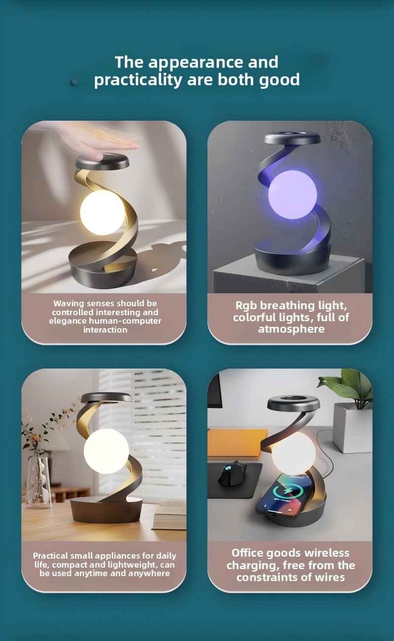 工厂有货Rotating Levitating Lamp+Glow Renewal+ Home Decor+Festive Parties+Decorative Accessories / Ornaments+Rotatable Desk Lamp+Creative Atmosphere Night Light for Camping旋转悬浮灯+焕容光+日用家具,节庆派对,饰品装饰+可旋转的台灯,露营营造氛围创意小夜灯,这盏灯最绝的是,明明靠科技耍酷,却暖得像有呼吸:旋转时漏下的光斑,会在墙上画银河;连关机后,悬浮的仪式感都还在。不管摆卧室当小夜灯,还是塞礼盒当惊喜,都是“把浪漫拧成螺旋,永远绕在身边”的温柔呀~
