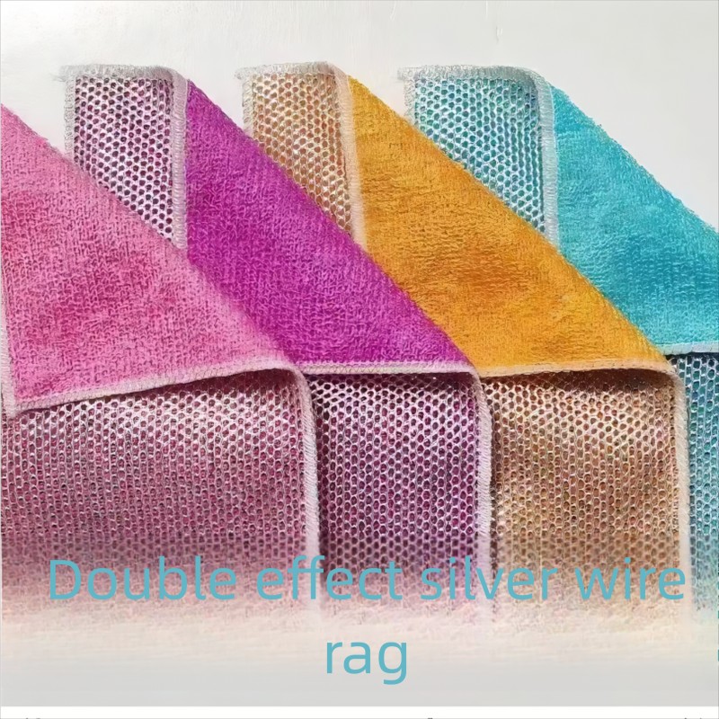 首页> 爆款预售> 清洁布> 2 Pack Double-Layer Silver Fiber Cleaning Cloths for Kitchen Home Multi-Purpose Strong Oil Stain Removal Random Color