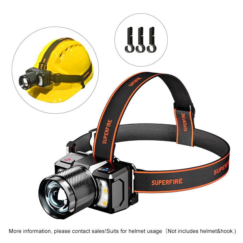 工厂有货LED Rechargeable Headlamp SUPERFIRE High Lumens Super Bright Hunting Outdoor Headlamps With Motion Sensor Multiple Modes Zoomable HeadlightLED 可充电头灯 SUPERFIRE 高流明超亮狩猎户外头灯带运动传感器 多种模式可变焦头灯,多功能红白光变焦头灯