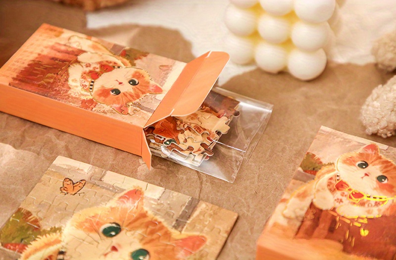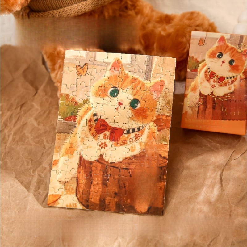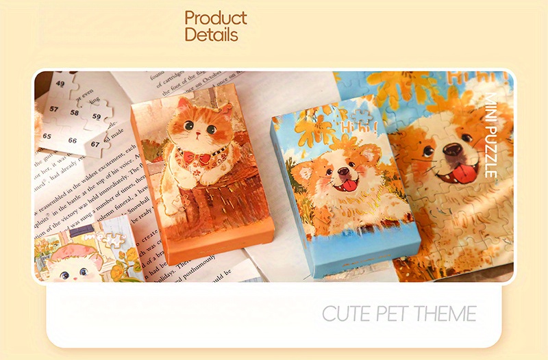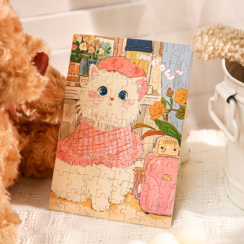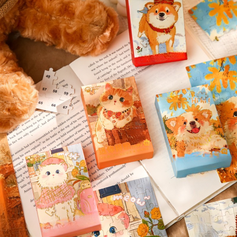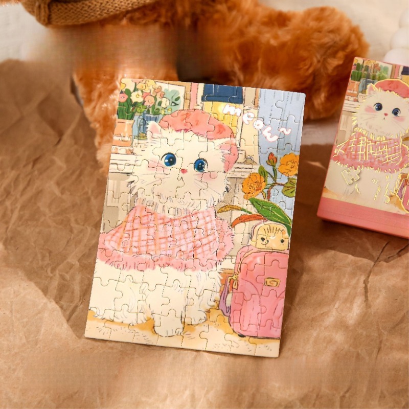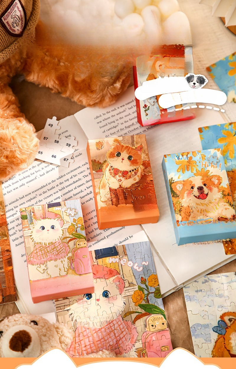 工厂有货4 styles, 1 set of 72-piece mini puzzles featuring a cat and dog theme, cute and romantic design, high-quality white cardboard DIY desktop puzzle decorations4款,1款72片迷你拼图 猫咪小狗主题 可爱浪漫风 高颜值优质白卡 diy桌面拼图摆件,迷你拼图 猫咪小狗 简约可爱 动物主题