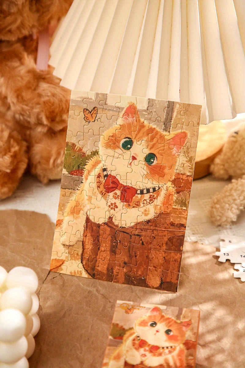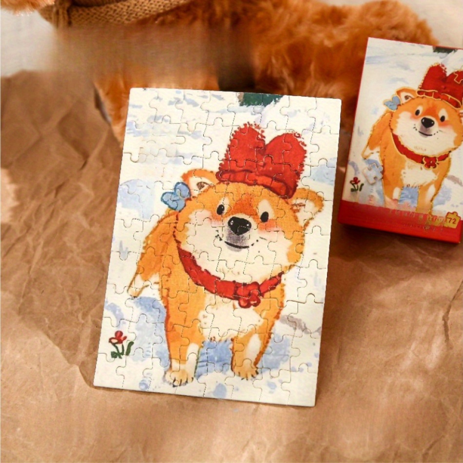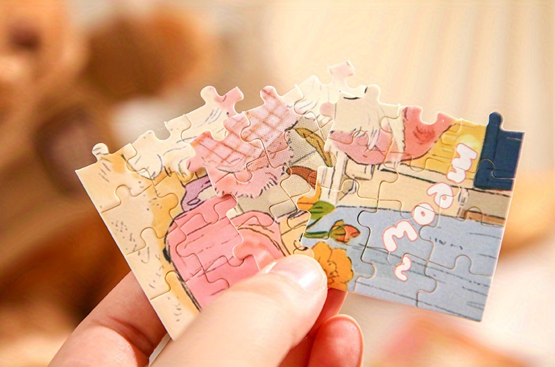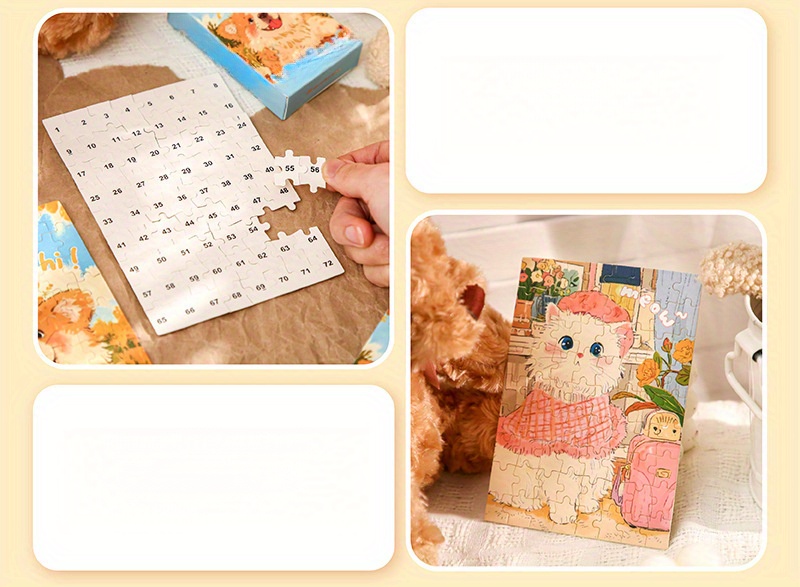 首页> 爆款预售> 卡片> 4 styles, 1 set of 72-piece mini puzzles featuring a cat and dog theme, cute and romantic design, high-quality white cardboard DIY desktop puzzle decorations