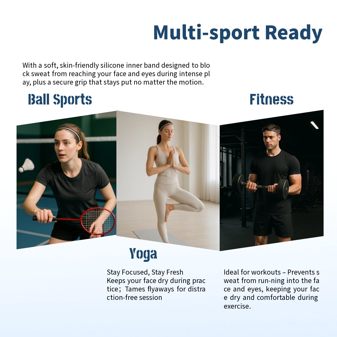 首页> 爆款预售> 运动头带> Breathable Sports Headband - Soft & Stretchable for Comfortable Fit - Sweat-Wicking & Non-Slip for Running/Yoga (4-Pack, Multiple Colors)