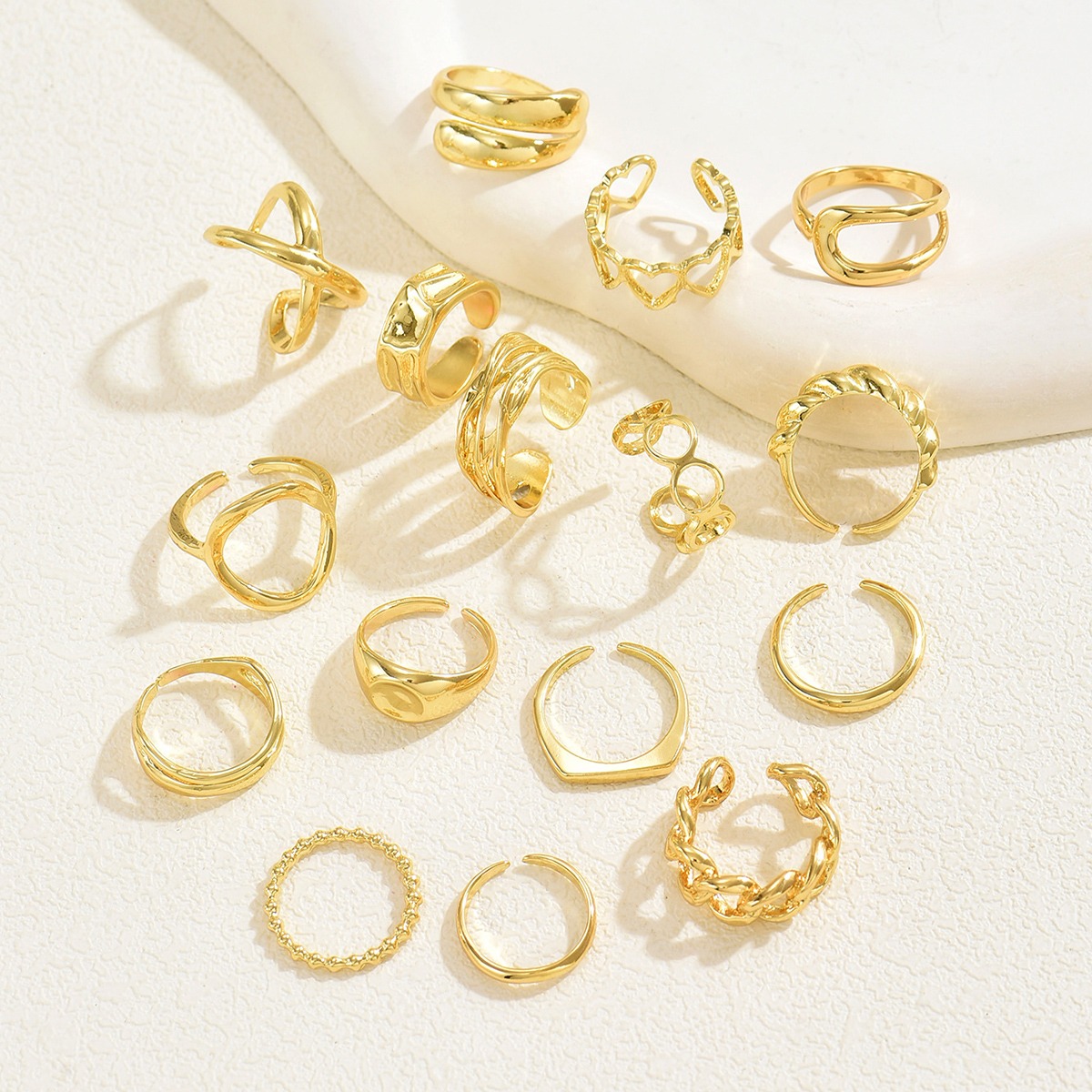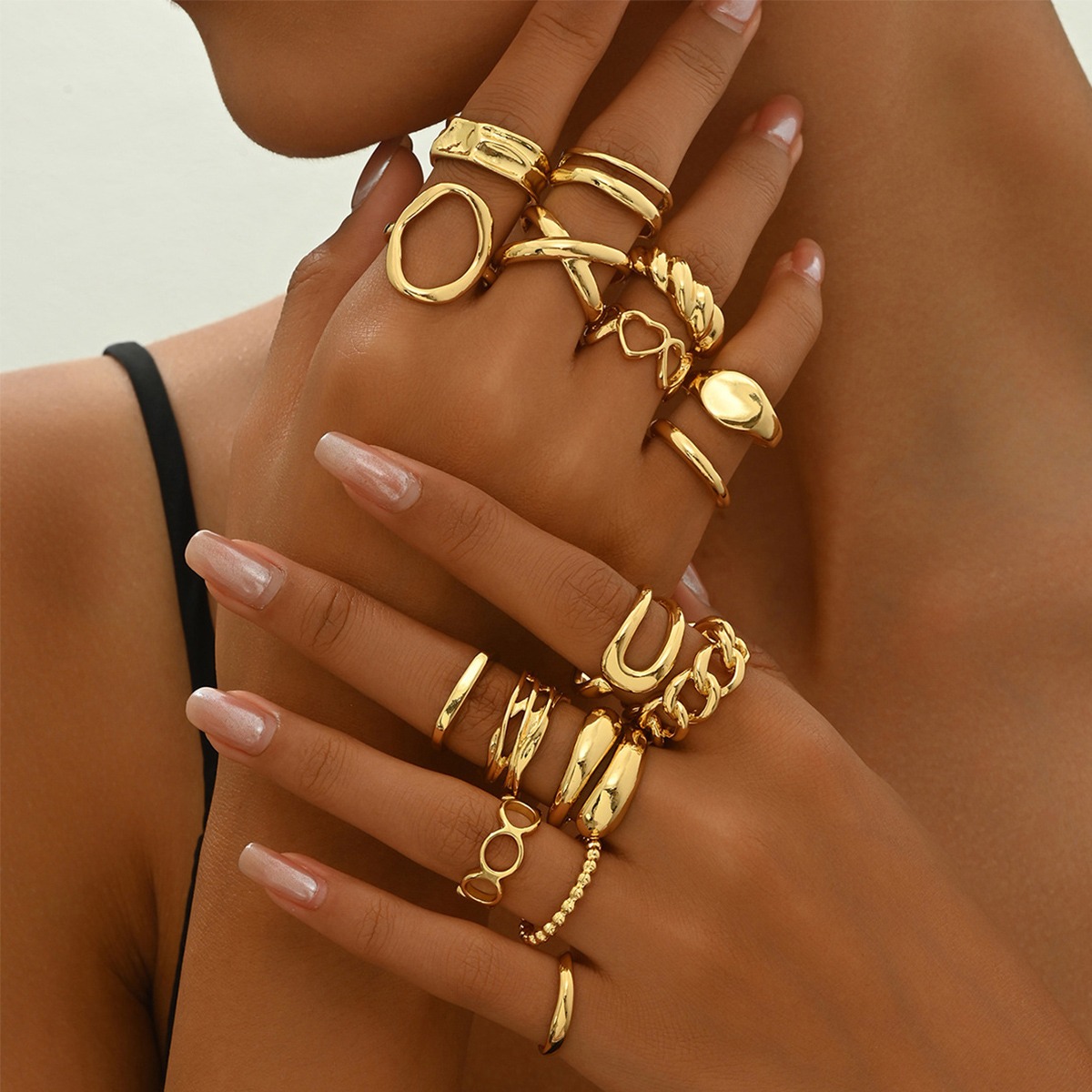 Geometric light luxury style women's love design open ring personalized niche design ring set versatile