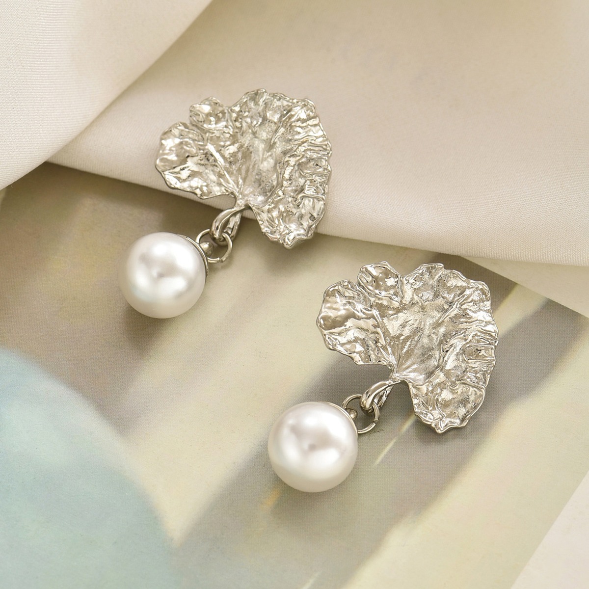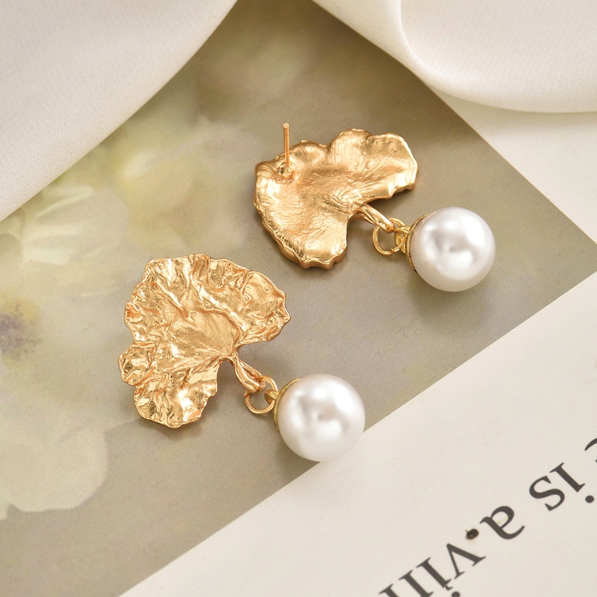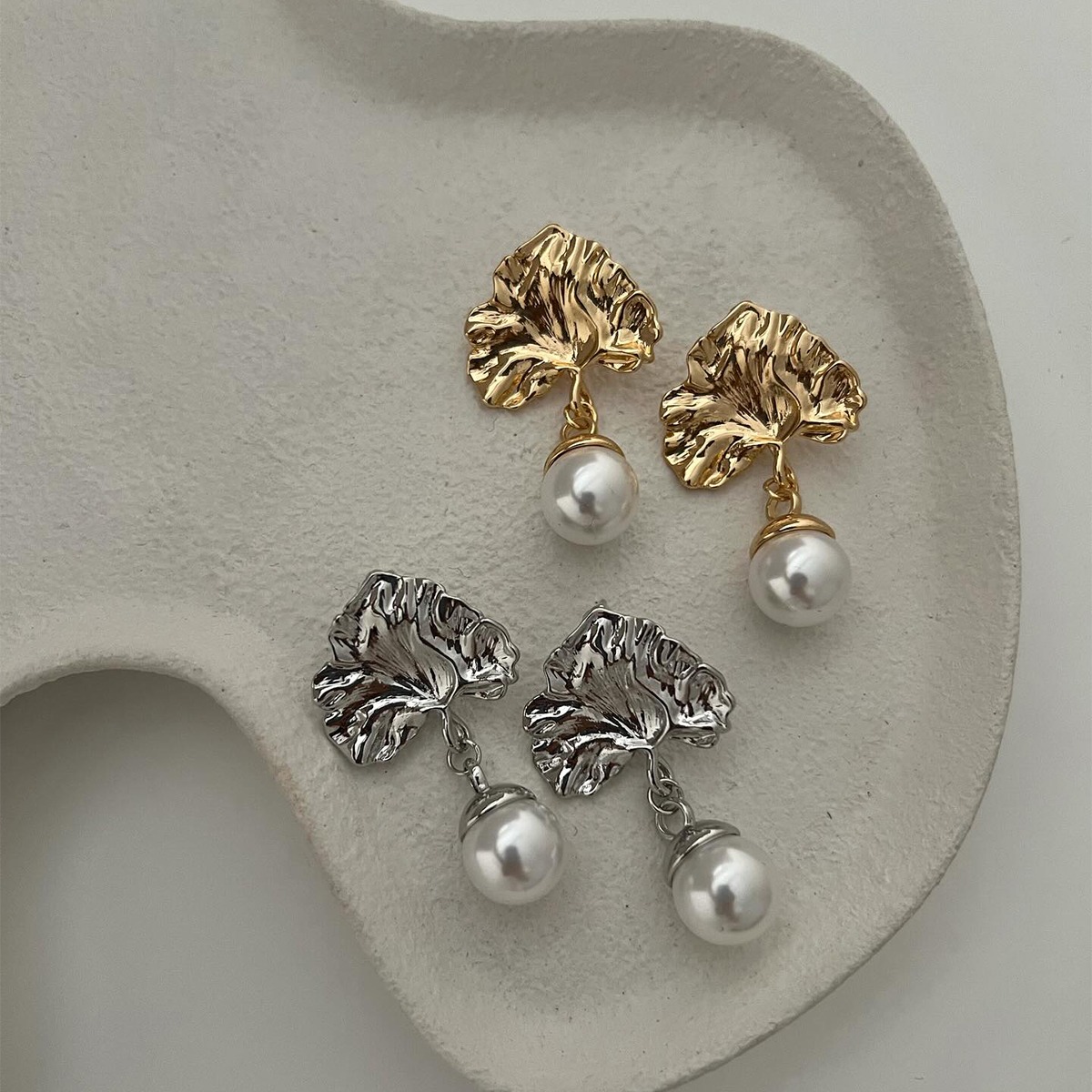 首页> 爆款预售> 耳环> A pair of retro Baroque imitation pearl earrings with a high-end feel, irregular fan-shaped earrings that are versatile for women