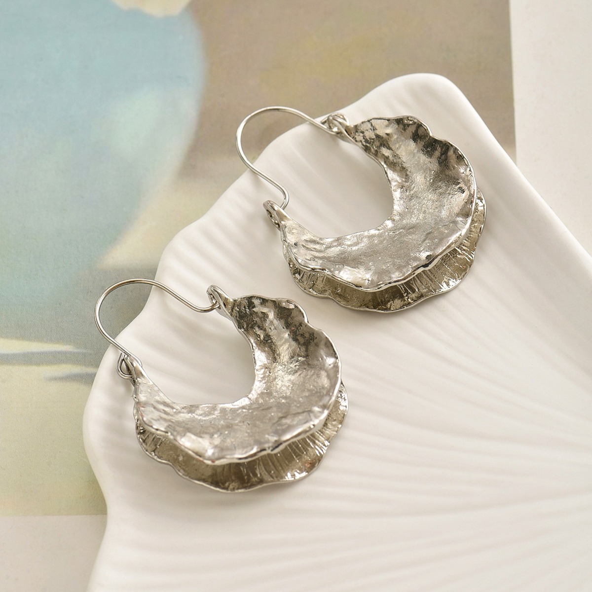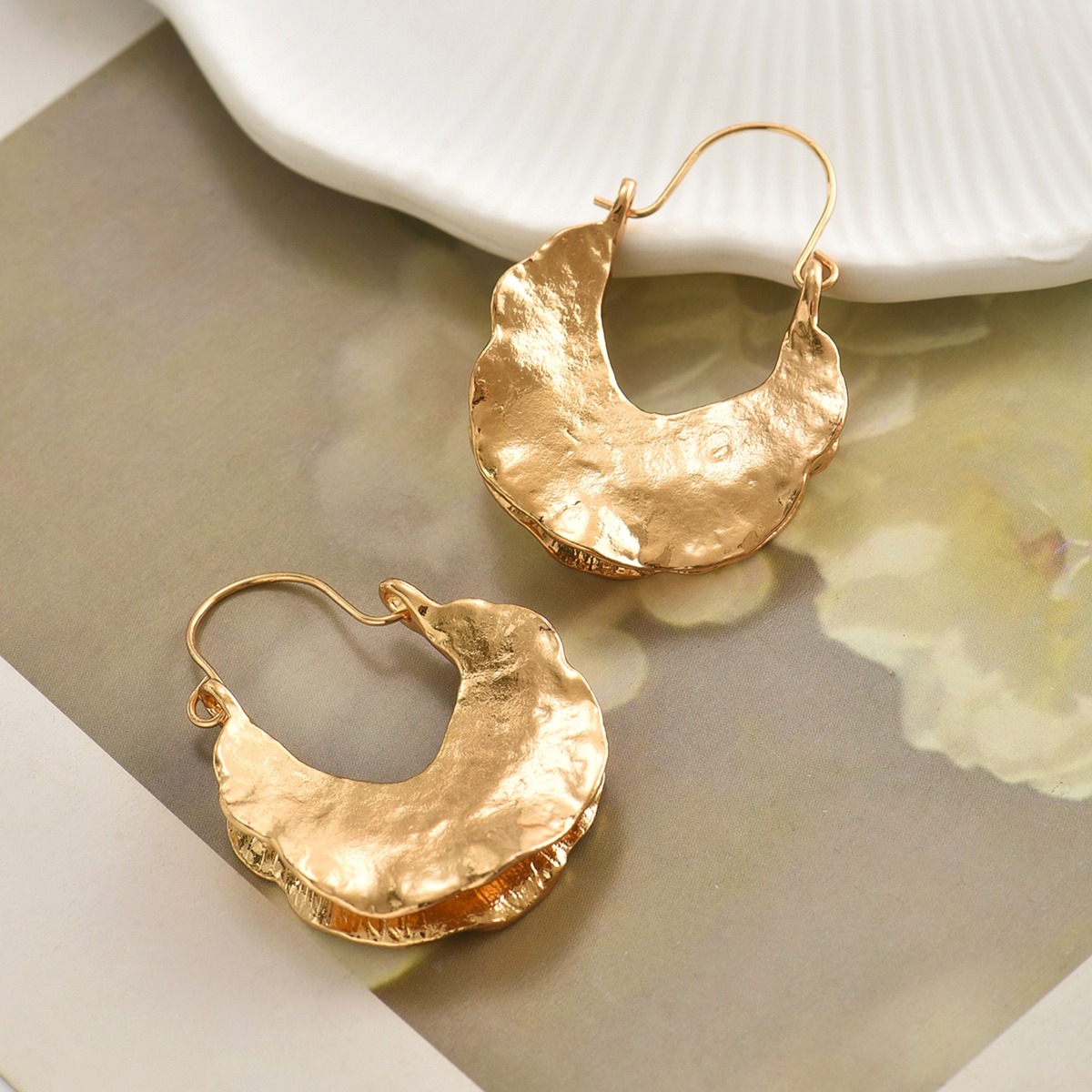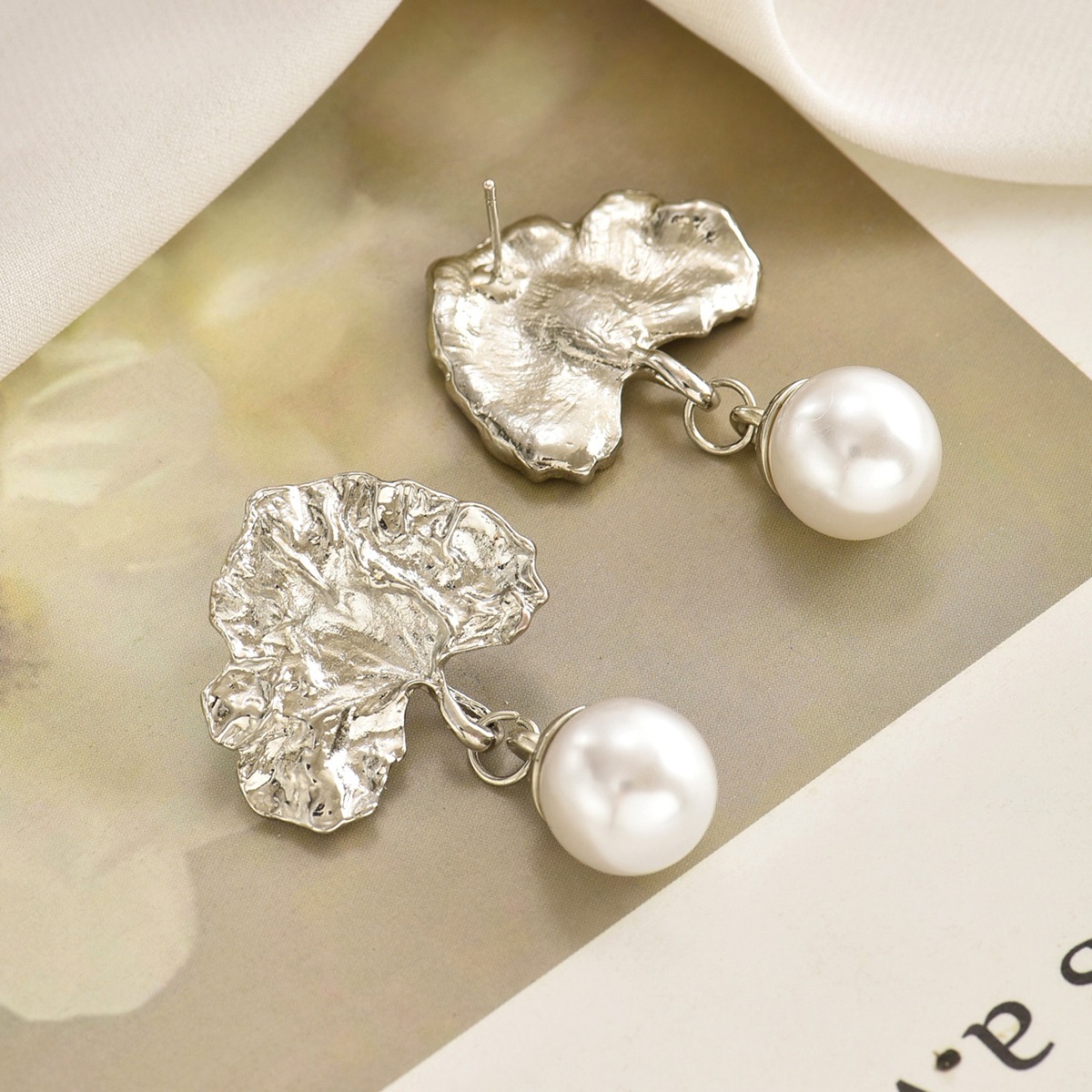 首页> 爆款预售> 耳环> A pair of retro Baroque imitation pearl earrings with a high-end feel, irregular fan-shaped earrings that are versatile for women